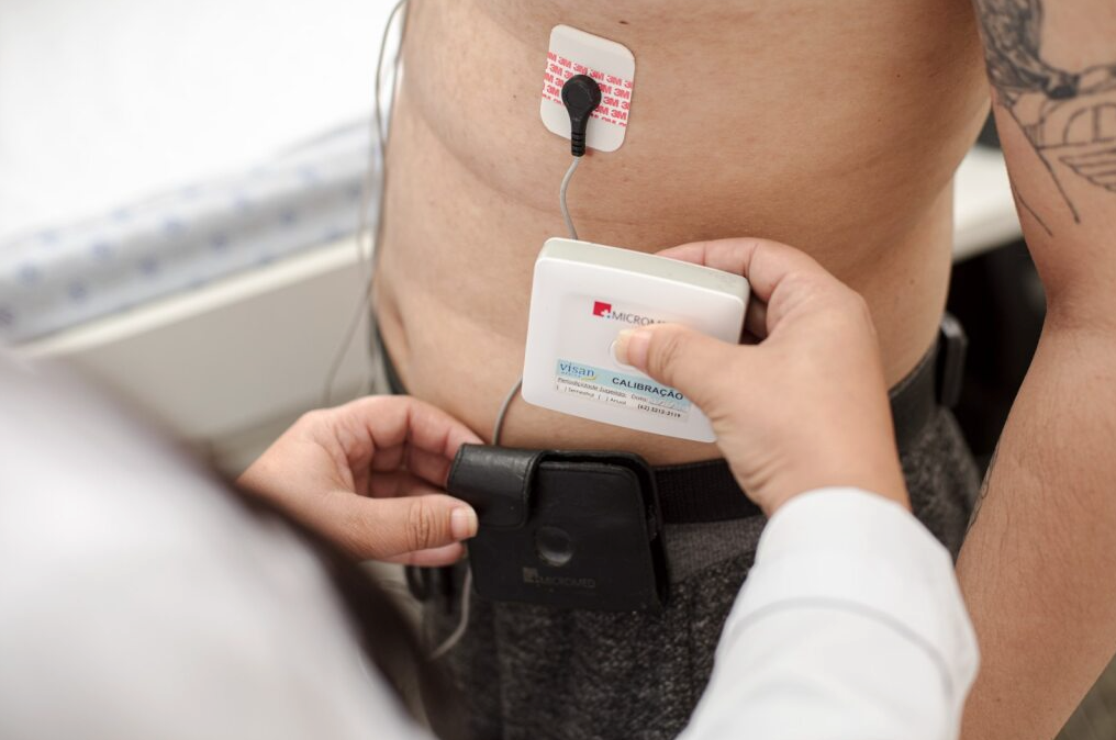 É o exame que mede a pressão arterial a cada 20 minutos, durante 24 horas, para a obtenção do registro a pressão arterial durante a vigília e o sono.